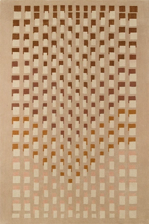 Its design is based on a mesmerizing arrangement of geometric shapes in shades of warm terracotta, beige and brown, which gives the interior a cozy yet elegant character. The gradual color transitions and rhythmic composition introduce a sense of depth, making the rug a distinctive but harmonious addition to the space.