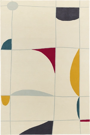 Toulemonde Bochart Stabile Multi rug is a handmade, multicolored rug inspired by Alexander Calder's mobile sculptures and Wassily Kandinsky's abstract paintings. Its cheerful composition with rhythmically spaced, intense colors fits harmoniously into modern spaces such as contemporary living rooms and bright bedrooms. Carefully crafted from high-quality wool, the rug combines the durability of the material with the softness of the colors on a pure white background.