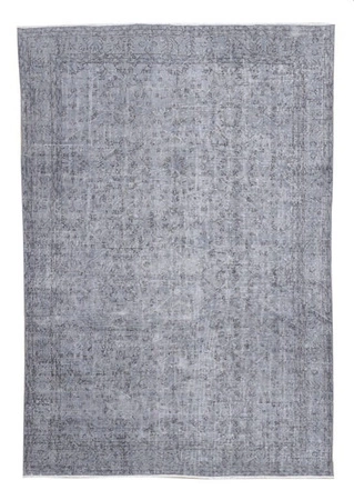 Unique vintage carpet from Iranian villas about 40 years old. The carpet has undergone a unique process of color neutralization, and then it has been re-dyed. The pile has also been trimmed in it - thanks to this treatment, the carpet still shows a shadow of the original pattern. To give the desired texture and slightly faded color, these carpets are washed and then left in the sun for an extended period of time.