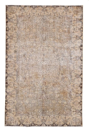 Unique vintage carpet from Iranian villas about 40 years old. The carpet has undergone a unique process of color neutralization, and then it has been re-dyed. The pile has also been trimmed in it - thanks to this treatment, the carpet still shows a shadow of the original pattern. To give the desired texture and slightly faded color, these carpets are washed and then left in the sun for an extended period of time.