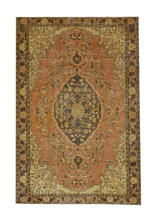 Unique vintage carpet from Iranian villas about 40 years old. The carpet has undergone a unique process of color neutralization, and then it has been re-dyed. The pile has also been trimmed in it - thanks to this treatment, the carpet still shows a shadow of the original pattern. To give the desired texture and slightly faded color, these carpets are washed and then left in the sun for an extended period of time.