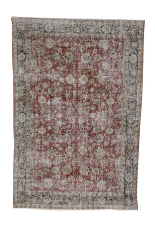 Unique vintage carpet from Iranian villas about 40 years old. The carpet has undergone a unique process of color neutralization, and then it has been re-dyed. The pile has also been trimmed in it - thanks to this treatment, the carpet still shows a shadow of the original pattern. To give the desired texture and slightly faded color, these carpets are washed and then left in the sun for an extended period of time.
