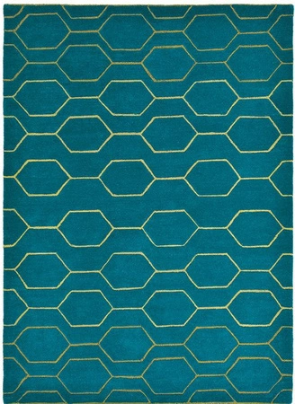 Carpet from the collection of the English brand Wedgwood Home with more than 250 years of tradition, whose luxurious products were appreciated by m.in. English Royal Family. The raw material is top quality virgin wool along with a touch of viscose, which makes the rug soft and pleasant to the touch and gives a noble sheen. Rug with golden geometric motif in turquoise.