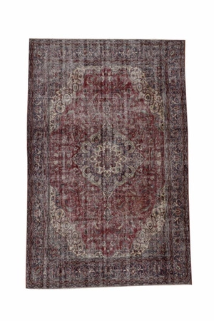 Unique vintage carpet from Iranian villas about 40 years old. The carpet has undergone a unique process of color neutralization, and then it has been re-dyed. The pile has also been trimmed in it - thanks to this treatment, the carpet still shows a shadow of the original pattern. To give the desired texture and slightly faded color, these carpets are washed and then left in the sun for an extended period of time.