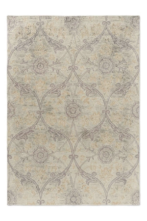 Wzór dywanu inspirowany jest tradycyjnym motywem damasceńskim, przedstawionym w delikatnym, beżowo-szarym odcieniu z subtelnymi akcentami liliowego . Ręczne tuftowanie przez doświadczonych rzemieślników w Indiach gwarantuje wysoką jakość wykonania.