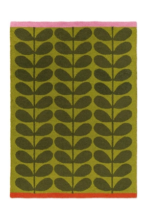 Dywan Orla Kiely Solid Stem Seagrass to efektowna propozycja, która łączy nowoczesne wzornictwo z wysoką funkcjonalnością. Charakterystyczny wzór przedstawiający stylizowane łodygi w odcieniach oliwkowej zieleni, przełamany różowymi i pomarańczowymi akcentami na obrzeżach, nadaje mu wyrazisty i świeży wygląd. Dzięki temu dywan świetnie ożywia zarówno nowoczesne, jak i bardziej klasyczne aranżacje.