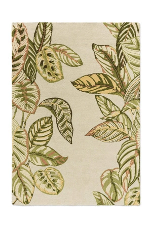 Dywan Sanderson Calathea Samphire to elegancka propozycja dla miłośników botanicznych wzorów i naturalnych akcentów we wnętrzach. Jego design inspirowany jest liśćmi rośliny Calathea, znanej również jako „modląca się roślina”, która była popularnym motywem ilustracyjnym w XIX wieku ze względu na swoje dekoracyjne ulistnienie . Wzór przedstawia dwa pasy bujnych, tropikalnych liści w odcieniach zieleni na jasnym tle, tworząc efektowną i harmonijną kompozycję.