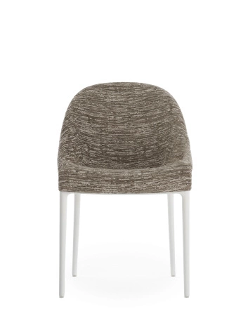 Obie wersje charakteryzują się ergonomicznymi, smukłymi liniami, które zostały subtelnie otulone tkaniną – do wyboru melanżowa tapicerka lub ekoskóra, podkreślająca ekskluzywny charakter mebla. Dzięki zastosowaniu miękkich, płynnych kształtów, krzesło jest nie tylko komfortowe, ale także niezwykle lekkie wizualnie, co sprawia, że doskonale komponuje się w każdej przestrzeni – od luksusowych wnętrz domowych po eleganckie restauracje czy hotele.