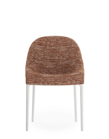 Obie wersje charakteryzują się ergonomicznymi, smukłymi liniami, które zostały subtelnie otulone tkaniną – do wyboru melanżowa tapicerka lub ekoskóra, podkreślająca ekskluzywny charakter mebla. Dzięki zastosowaniu miękkich, płynnych kształtów, krzesło jest nie tylko komfortowe, ale także niezwykle lekkie wizualnie, co sprawia, że doskonale komponuje się w każdej przestrzeni – od luksusowych wnętrz domowych po eleganckie restauracje czy hotele.
