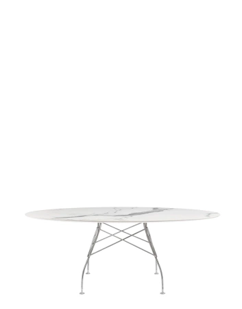 Glossy Marble Oval 192x118 cm Stół Chromowany Biały
