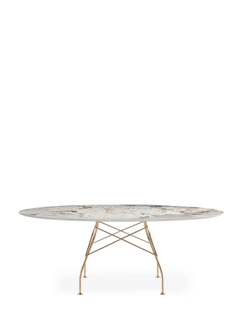 Glossy Marble Oval 192x118 cm Stół Pozłacany Nature Tundra