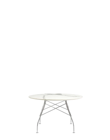 Glossy Marble Round Ø118 cm Stół Chromowany Biały