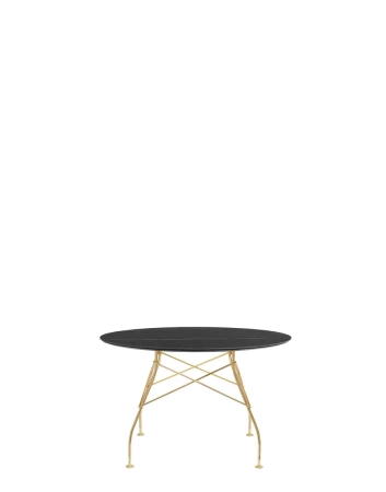 Glossy Marble Round Ø118 cm Stół Pozłacany Czarny Marquina