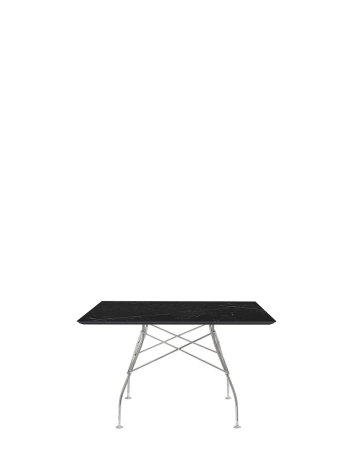 Glossy Marble Square 118x118 cm Stół Chromowany Czarny Marquina