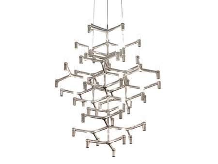Crown to współczesna ikona designu, która nawiązuje do form dawnych żyrandoli, łącząc klasyczną inspirację z nowoczesnym językiem projektowym. Jej wyjątkowy kształt, zainspirowany strukturą śnieżynek, emanuje subtelną elegancją i złożonością – przypominając naturalne piękno w geometrycznej, architektonicznej formie.