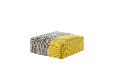 Pufa Mangas Space Square marki GAN Rugs, zaprojektowana przez Patricię Urquiolę, to wyjątkowy mebel łączący tradycyjne rzemiosło z nowoczesnym designem. Jej estetyka inspirowana jest techniką ręcznego tkania, co nadaje jej unikalny charakter i teksturę.