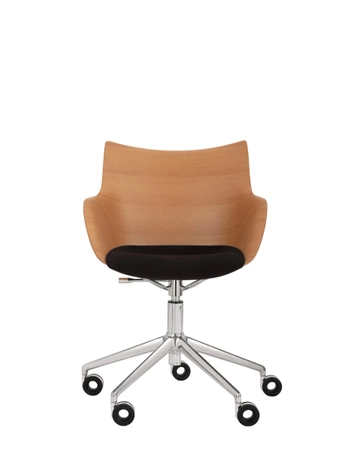 Q/Wood od Kartell to nowoczesne obrotowe krzesło, które łączy ponadczasową elegancję drewna z nowoczesnym designem. Jego charakterystyczną cechą jest precyzyjne wykonanie z giętego drewna, które nadaje mu unikalny wygląd. Dostępne w trzech wariantach kolorystycznych: jasne drewno z białym siedziskiem i chromowaną podstawą, ciemne drewno z czarnym siedziskiem i chromowaną podstawą lub ciemne drewno z czarnym siedziskiem i czarną podstawą. Q/Wood to idealny wybór do biura lub nowoczesnych wnętrz, oferując styl i komfort w jednym.