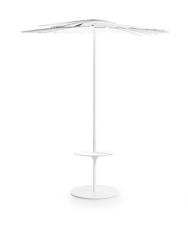 Solidny stalowy maszt parasola ENSOMBRA może zostać uzupełniony o stolik typu C w rozmiarach D50 lub D60. Wykonany z laminatu HPL stolik o regulowanej wysokości oferuje wszechstronność zastosowania – sprawdzi się zarówno jako praktyczna powierzchnia między leżakami lub fotelami, jak i jako stylowy element strefy barowej z wysokimi stołkami.