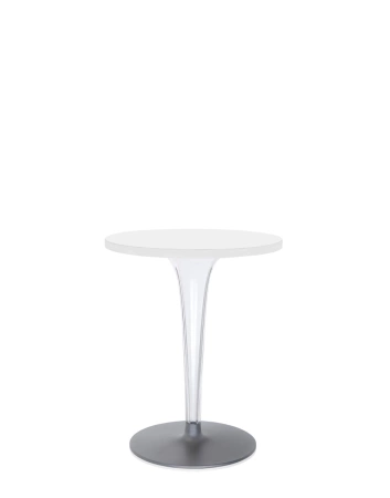 TopTop to linia stołów wyróżniająca się charakterystyczną nogą, która może mieć okrągły lub kwadratowy przekrój. Jej transparentna, wielopłaszczyznowa powierzchnia skrywa metalowy rdzeń, dodający całości elegancji i nowoczesnego charakteru.