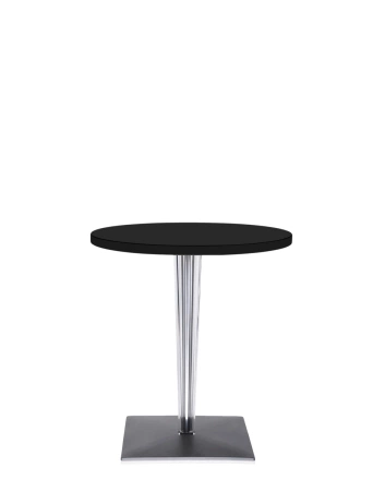 TopTop to linia stołów wyróżniająca się charakterystyczną nogą, która może mieć okrągły lub kwadratowy przekrój. Jej transparentna, wielopłaszczyznowa powierzchnia skrywa metalowy rdzeń, dodający całości elegancji i nowoczesnego charakteru.