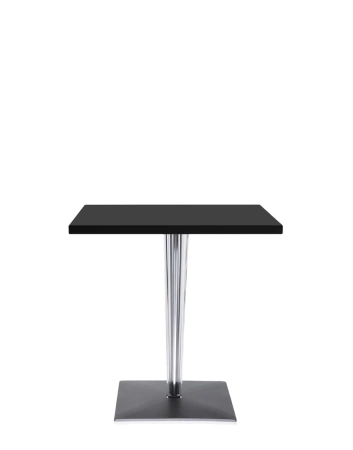 TopTop to linia stołów wyróżniająca się charakterystyczną nogą, która może mieć okrągły lub kwadratowy przekrój. Jej transparentna, wielopłaszczyznowa powierzchnia skrywa metalowy rdzeń, dodający całości elegancji i nowoczesnego charakteru.