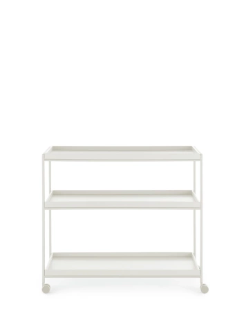 TRAYS to wszechstronny system półek do użytku domowego lub biurowego. Koncepcja opiera się na zestawie stolików, wózków i półek, których powierzchnie inspirowane są tradycyjnymi japońskimi tacami lakierowanymi – zarówno pod względem wzornictwa, jak i wykończenia. Kolekcja TRAYS jest teraz większa niż kiedykolwiek wcześniej – nowe wysokości i kształty odpowiadają szerszemu zakresowi nowoczesnych potrzeb i funkcjonalności. TRAYS oferuje także nową paletę kolorystyczną – metalowe ramy dostępne są teraz w odcieniach ton w ton.